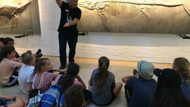 Eine Menge interessante Erklärungen gab es daraufhin im Urwelt-Museum-Hauff in Holzmaden. Die Schwäbische Alb war vor Millionen Jahren ein warmes Meer, ein Zentimeter Schiefer entspricht ca. 10000 Jahren und es gab einmal Fische ohne Gräten! Nach den eigenen Erfahrungen im Schieferbruch, lösten die ausgestellten Fossilien große Bewunderung und Staunen aus.