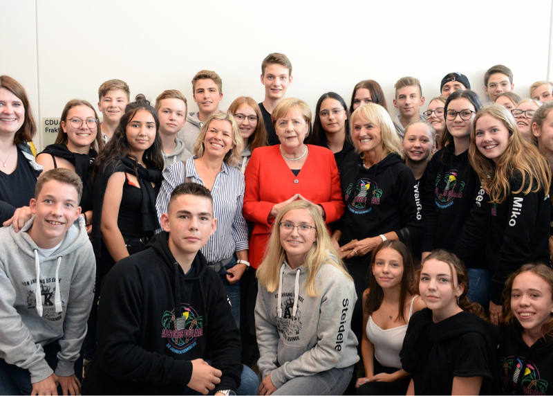 Während des Rundgangs durften alle Beteiligten ein besonderes Highlight erleben. Die Bundeskanzlerin Angela Merkel stellte sich für ein Gruppenfoto zur Verfügung.