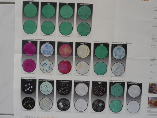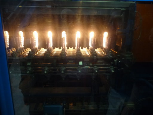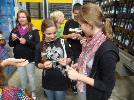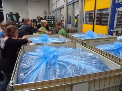 Wir haben die PET-Anlage besichtigt. In Containern werden die reagenzglasgroßen Rohlinge angeliefert. |