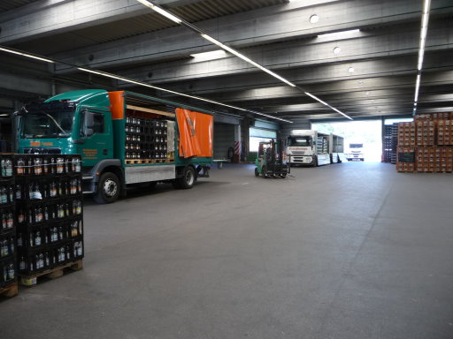 Die kommissionierte (bestellte und geprüfte) Ware wird auf der Ladestraße auf die LKWs verladen. |