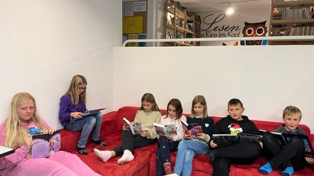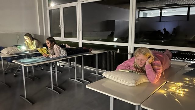 Am Freitag, den 24. November 2023, versammelten sich 35 Schülerinnen und Schüler der Klassen 5a, 5b und 5c zusammen mit ihrer Lehrerin, Frau Wegmann, sowie Johanna Wiegel aus der 9b und Anna Wegmann zu einem gemütlichen Leseabend in der Schule.
