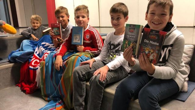 Am Freitag, dem 23. November 2018 trafen sich 56 Schülerinnen und Schüler aus den Klassen 5 und 6 mit ihren Lehrerinnen Frau Wegmann, Frau Jungblut und Frau Koch zu einem Leseabend an der Schule.