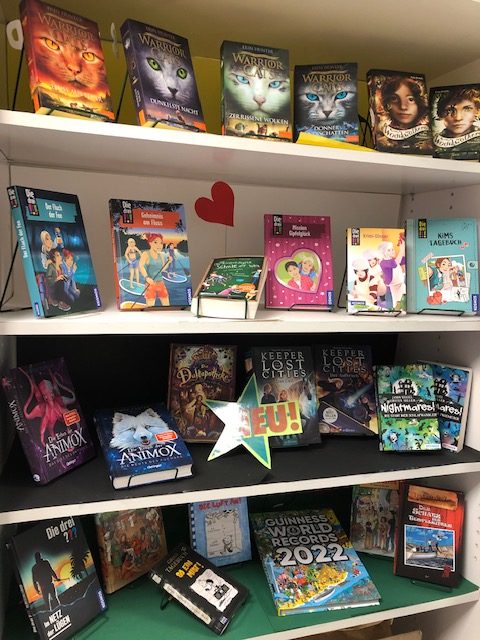 Mit einer großzügigen Spende hat der Förderverein es der Schülerbücherei ermöglicht, dass viele neue Bücher angeschafft werden konnten. Unseren SchülernInnen kann nun ein aktuelles Leseangebot gemacht werden. Die neuen Bücher sind derzeit im Schrank neben der Schülerbücherei ausgestellt und können demnächst ausgeliehen werden.