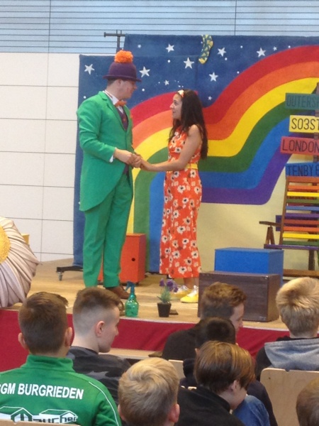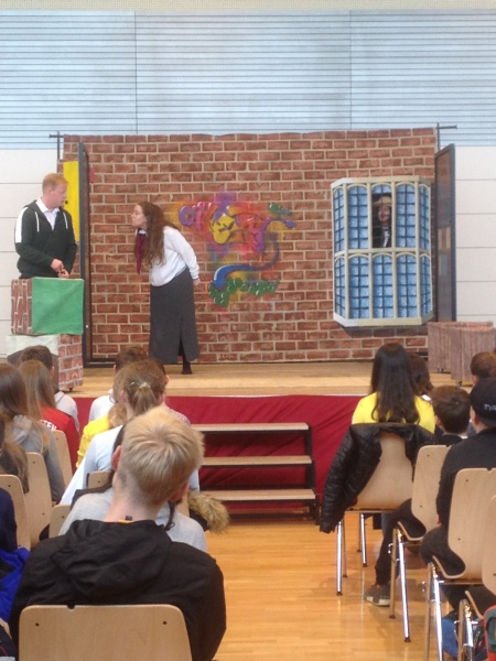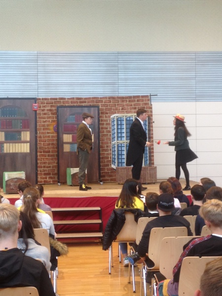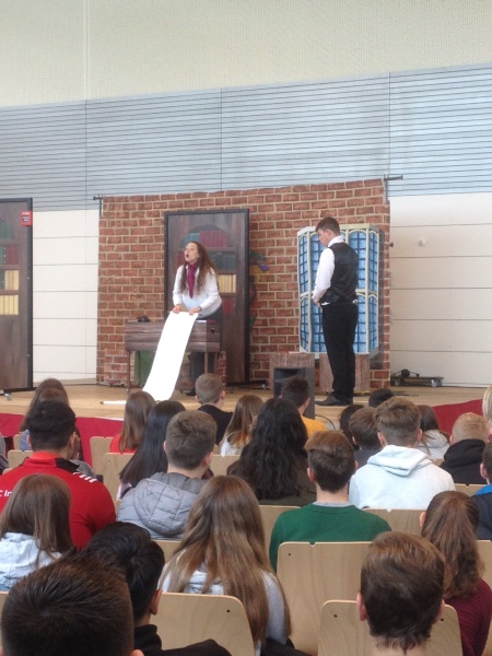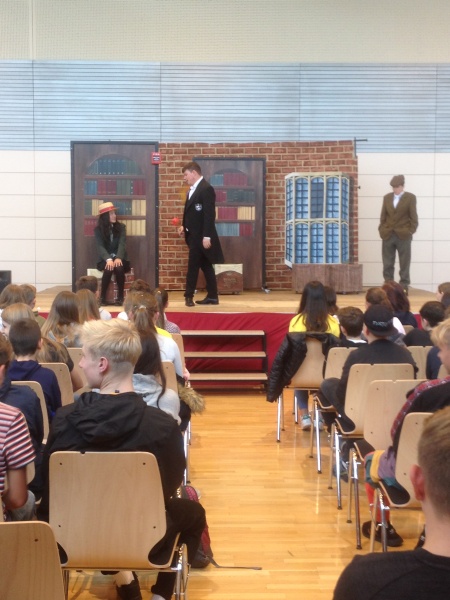 Auch diesen Oktober war die Theatergruppe „White Horse Theatre“ wieder mit zwei spannenden, aber auch amüsanten Vorstellungen an der Max-Weishaupt-Realschule. So konnten letzte Woche die Schüler der Klassen 6 und Klassen 7 ihre englischen Sprachkenntnisse in dem Stück „The Empty Chair“ vertiefen. Für die Schüler der Klassen 8, 9 und Klassen 10 führten die Schauspieler Melanie, Savannah, Daniel und Samuel das Stück „Two Gentlemen“ auf, eine moderne Adaption der Shakespeare-Komödie ‘Zwei Edelmänner von Verona’.