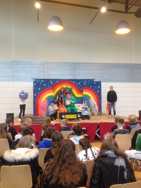 Ein herzliches Dankeschön an dieser Stelle an die Mitarbeiter des Bauhofes, für die Hilfe beim Aufbau der Bühne. Es war wieder ein eindrucksvolles Theater-Erlebnis für die Schülerinnen und Schüler.