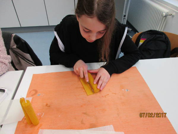 Die Herstellung der Bienenwachskerzen machte uns richtig Spaß.