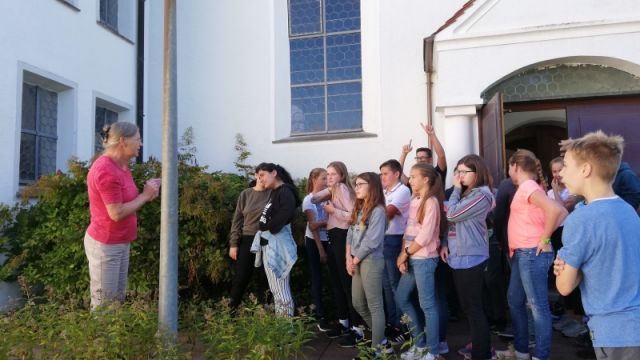 Gemeinsamer Religionsunterricht bietet sich manchmal an, vor allem dann, wenn es um das Thema: „Evangelisch – Katholisch“ geht. Alle Schüler*innen der Klassenstufe 7 machten im Rahmen des RU einen Lerngang nach Wain, um die dortige Pfarrkirche zu besichtigen.