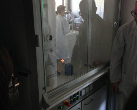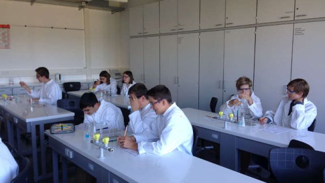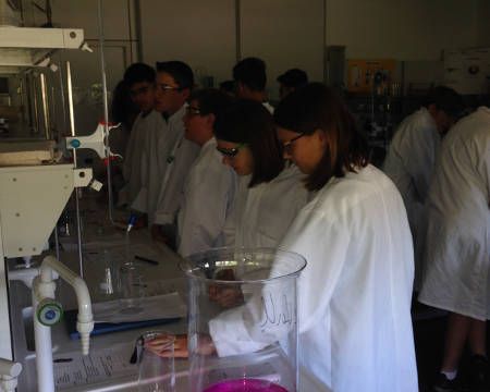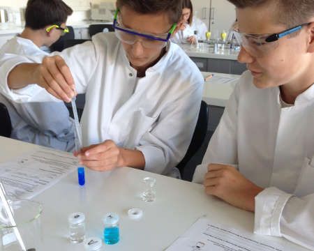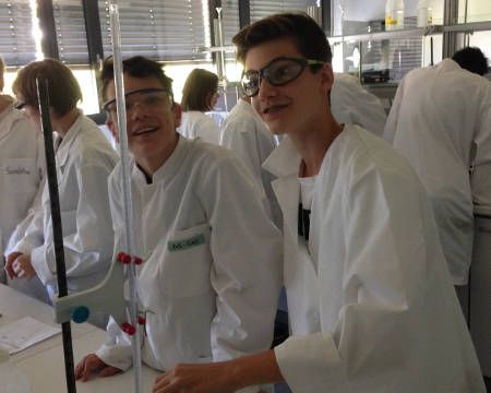 Neben der interessanten Laborarbeit informierte Herr Dr. Kugelmann unsere Achtklässler auch über die entsprechenden Schul- und Berufsabschlüsse, welche nach der 10. Klasse in Laupheim angestrebt werden können. Zum einen können naturwissenschaftlich interessierte Schülerinnen und Schüler das Berufskolleg CTA (chemisch-technischer Assistent) wählen oder sie entscheiden sich für die Doppelqualifikation „Abi und Beruf in drei Jahren“. Dabei erlangen die Schülerinnen und Schüler in den drei Jahren neben der Allgemeinen Hochschulreife noch den Berufsabschluss „Umweltschutz-Technischer Assistent“ (UTA).
