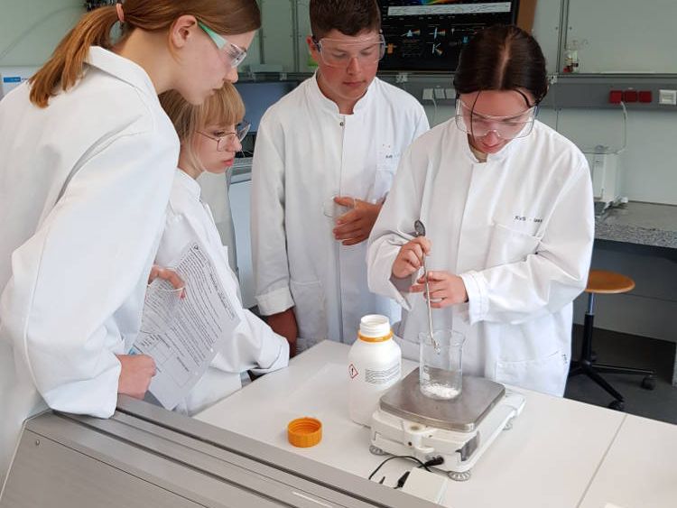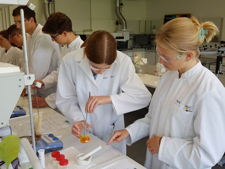 Unsere Neuntklässler nehmen nun neben dem chemischen Wissen, den interessanten Einblicken in die KvS-Labore, auch ein weiteres Puzzlestück für die Entscheidung ihres zukünftigen Bildungsweges mit. Ein herzlicher Dank gilt abschließend Herrn Dr. Kugelmann für die gewinnbringenden Einblicke und die interessante Laborarbeit.
