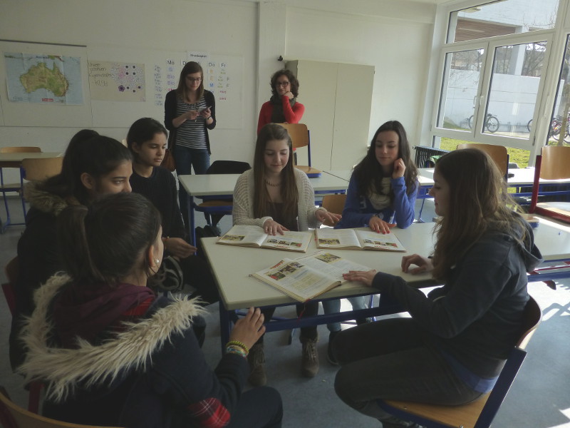 Beim darauffolgenden Schultag führten die deutschen Schüler ihre französischen Partner über das Schulgelände und durch die verschiedenen Räume, wo sie gemeinsam am Unterricht teilnahmen.