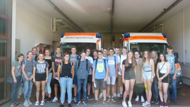 Ein Ausflug führte 24 Schulsanitäterinnen und Schulsanitäter am 17. Juli 2019 nach Biberach zur größten DRK-Rettungswache in unserem Landkreis.
