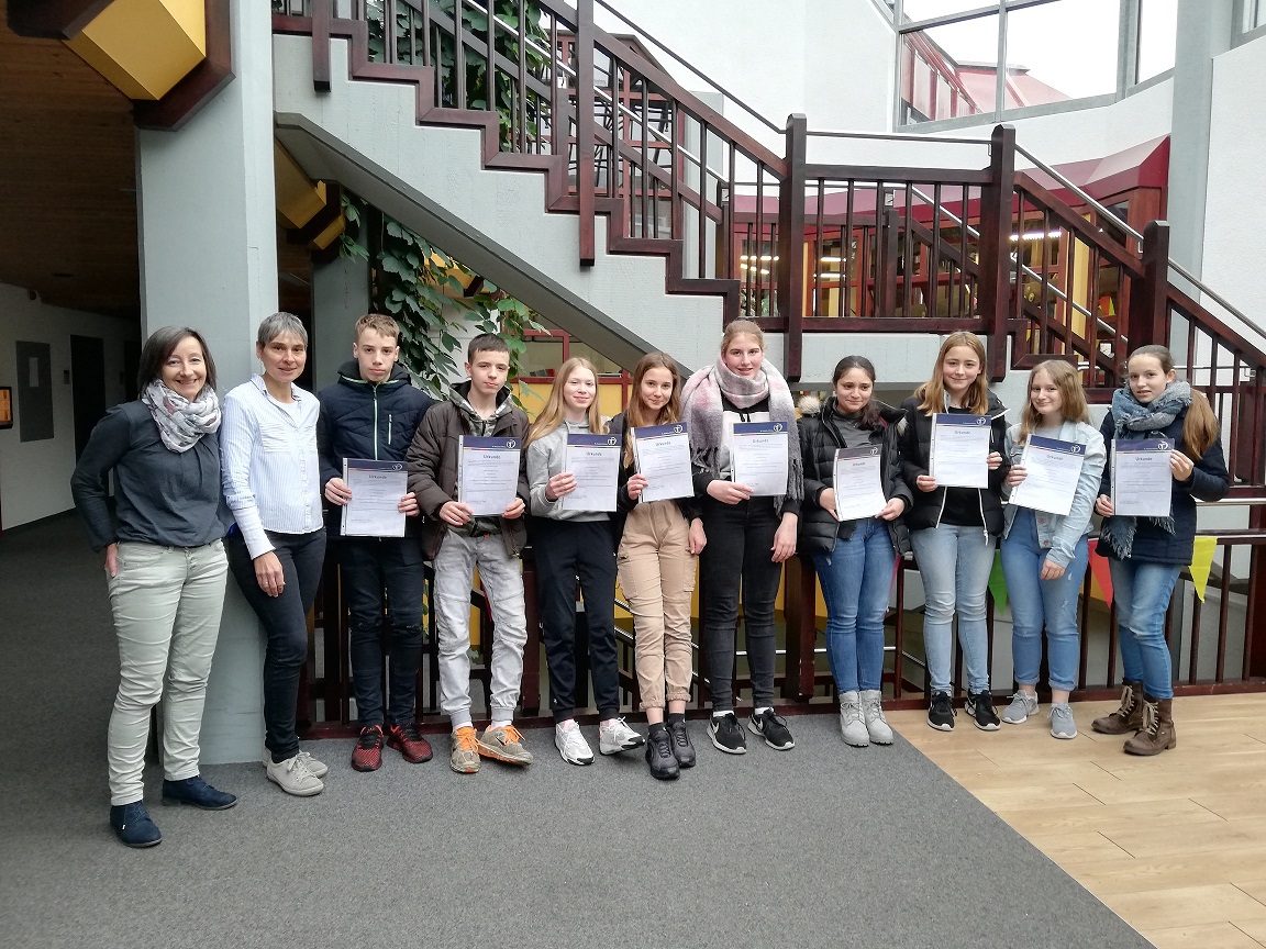 Auf dem Foto sind auch Frau Helen Berg und Frau Doris Kaiser, die euch begleitet und die Urkunden überreicht haben.
